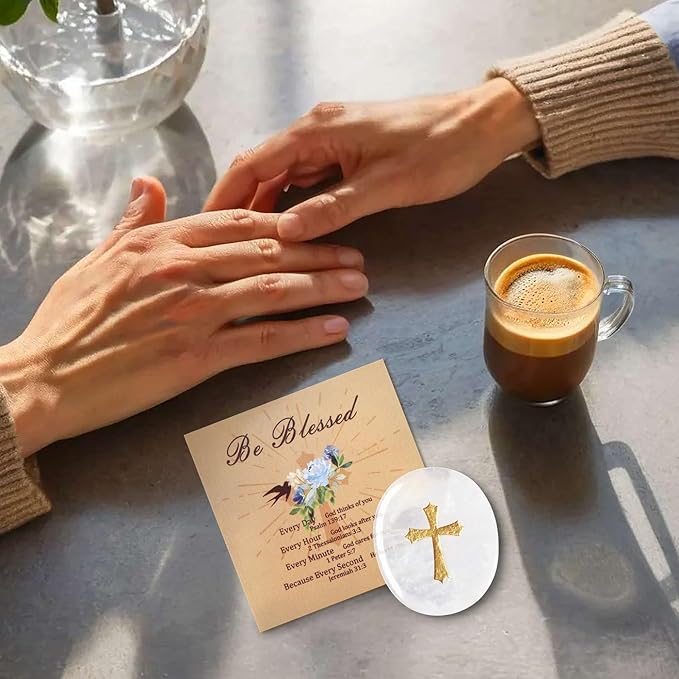 - 【Therapy and Gift】Hold the crystal in your hand and rub its soothing surface to relieve stress and anxiety. The crystal worry stone is polished and carved, comes with a blessing card, and is beautifully packaged. A good gift for crystal lovers and Christians.