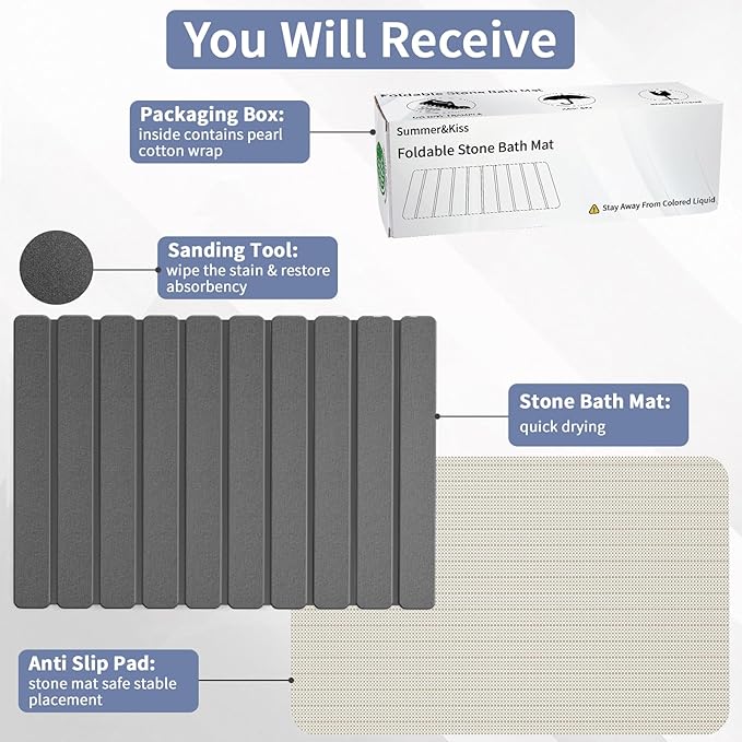 - Anti-Slip Design: The surface texture of the diatomite stone bath mat increases friction, a full PVC anti-slip backing is attached to the back, and includes an extra non-slip mat, ensures that the stone bath mat grips the floor securely.