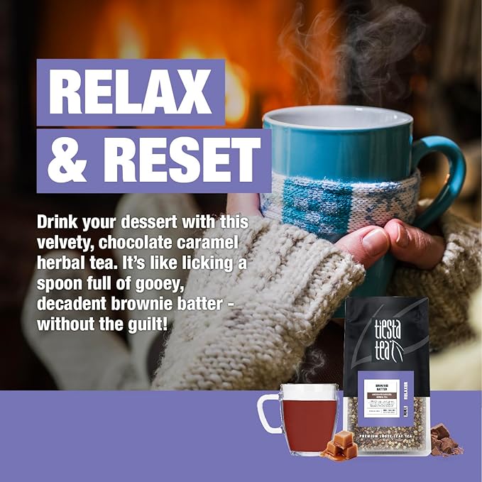 Tiesta Tea - Brownie Batter, Loose Leaf, Chocolate Caramel Herbal Tea, Non-Caffeinated Blend, Make Hot or Iced & Brews Up to 140-200 Cups, 16 oz Resealable Bulk Pouch
