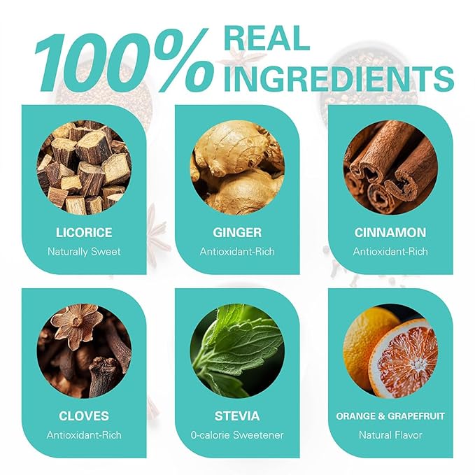 - 【Spicy Sweet】Licorice Spice Tea Bags offer a naturally sweet, smooth flavor with a comforting blend of warm, spicy spices and a rich aroma with a hint of citrus