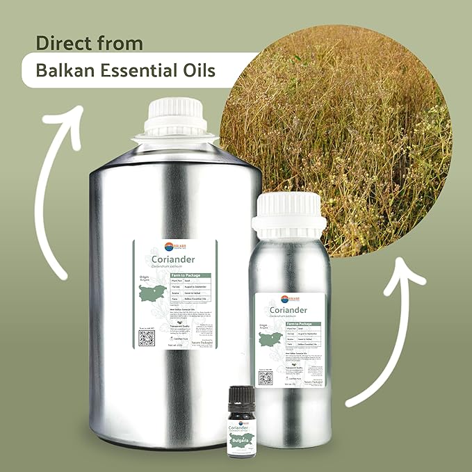 - BALKAN MOUNTAIN EXCELLENCE: 100% pure coriander seed oil from 30+ years of Bulgarian organic cultivation expertise, steam distilled for premium therapeutic grade purity