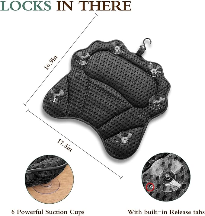 - 💖【A truly ergonomic bath pillow】ergonomic custome designed headrest brings head and neck max. comfort and relaxation. Extra thick shoulder and back padding brings shoulder and back max. support and relaxaion.Fits all Bathtub, Spa Tub, Hot Jacuzzi.