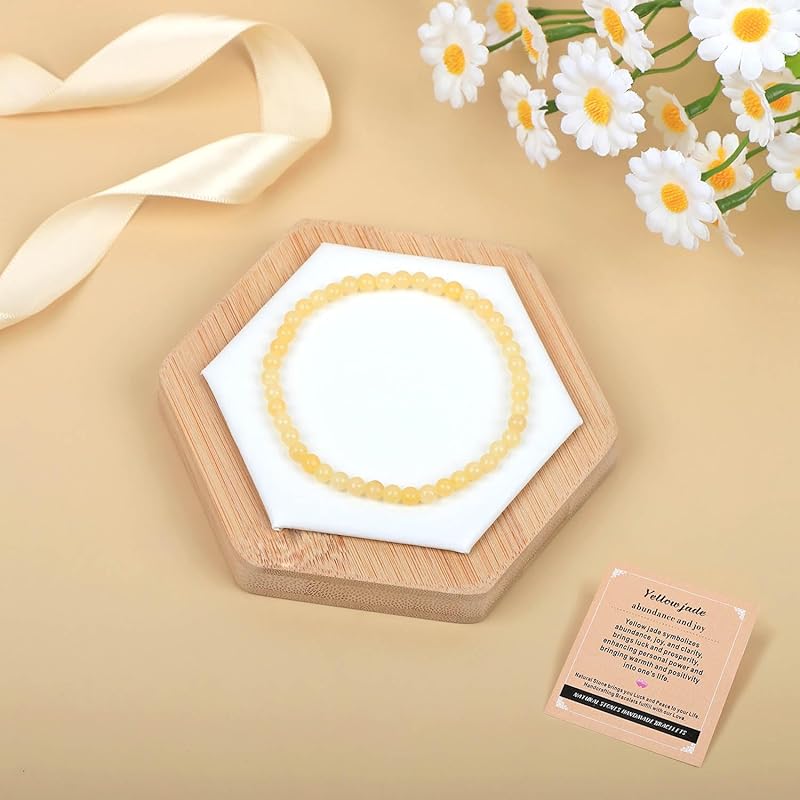 AD Beads Handmade Gemstone Stretch Elastic Bracelet Crystal Healing Reiki Nature's Beauty and Spiritual Essence Unisex (10mm, Yellow Jade (abundance and joy))