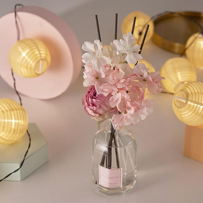 COCORRÍNA Reed Diffuser - Cherry Blossom 8.5 Fl.oz/ 250ml Flower Diffuser with 8 Sticks, Reed Diffusers for Home Bathroom Shelf Decor (Botanical Flower Collection)