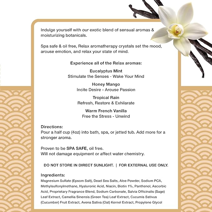 Relax Spa & Bath, Epsom & Dead Sea Salts, Aromatherapy Bath Salts for Hot Tub, Bath, or Spa, Infused with Magnesium, Warm French Vanilla Scent