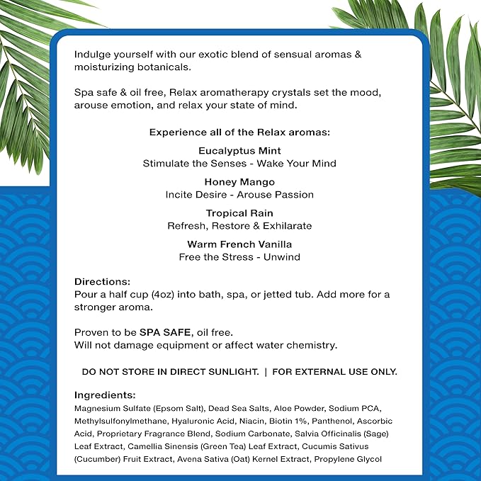 Relax Spa & Bath, Epsom & Dead Sea Salts, Aromatherapy Bath Salts for Hot Tub, Bath, or Spa, Infused with Magnesium, Tropical Rain Scent