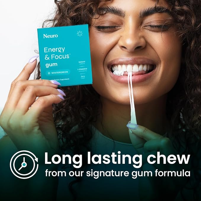 NeuroGum Energy & Focus Gum (90 Count Bag, Wintergreen) | 40mg Natural Caffeine + L-Theanine + Vitamin B12 & B6 + Xylitol | Sugar Free Nootropic Cognitive Brain Performance Supplement