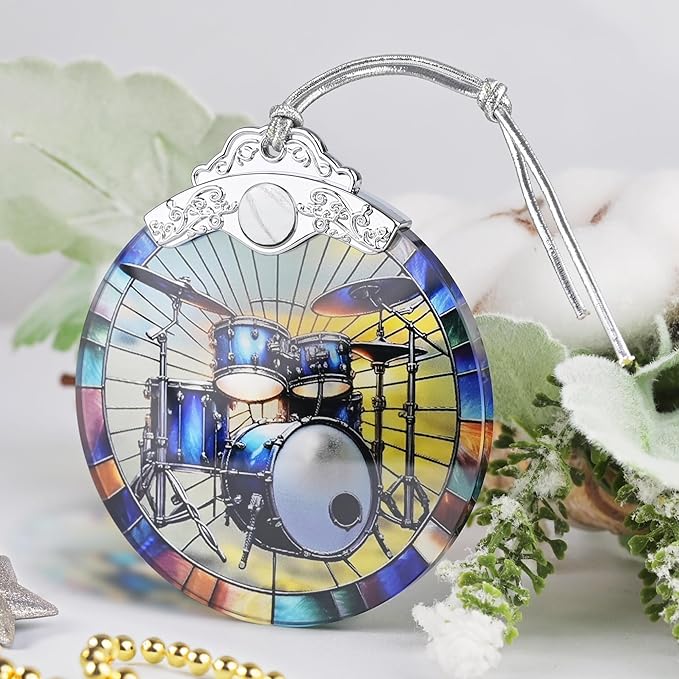 Christmas Ornament, 2025 Ornaments for Christmas Tree, Stained Glass Hanging Ornament, Holiday Ornaments, Unique Gift Idea - Drum Set