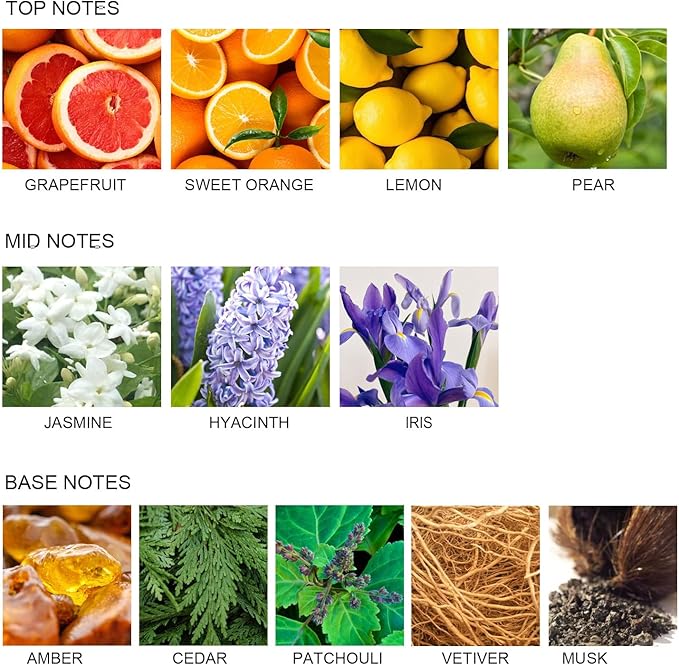 - Pink Encounter: Zesty citrus & juicy pear meet blooming florals of jasmine, hyacinth, and iris.