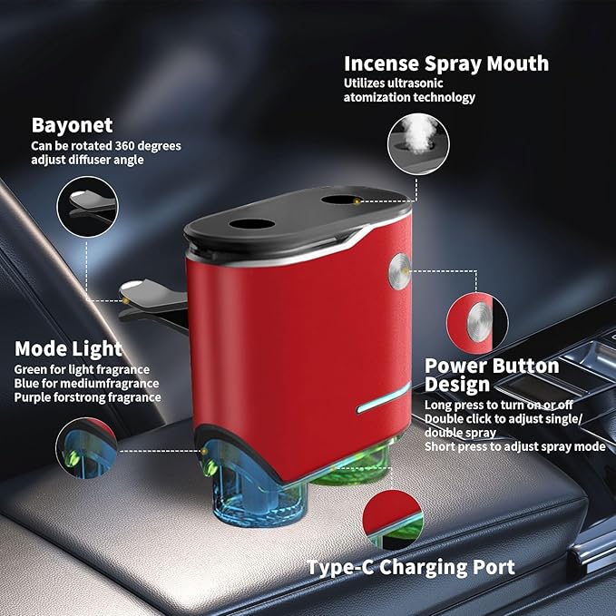- DUAL SPRAY DESIGN: This smart car air freshener features a dual-hole spray mechanism, ensuring even distribution of your favorite scents throughout your vehicle. Perfect for maintaining a fresh new car smell.