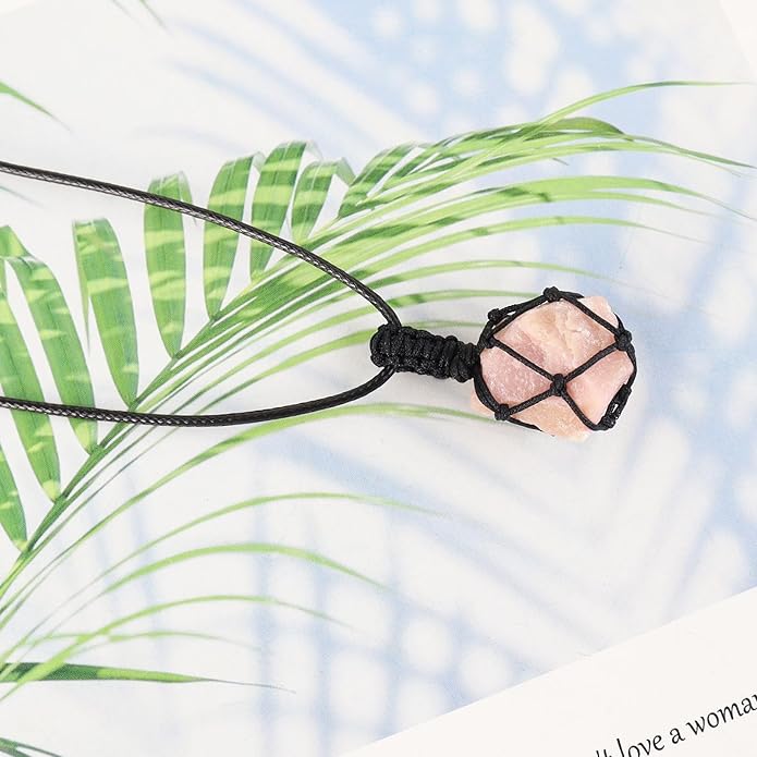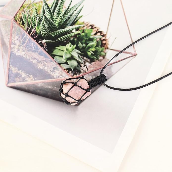 Handmade Natural Gemstone Crystal Pendant Necklace Stone Holder Necklace Cord Net Necklace with Adjustable Length for Women Men
