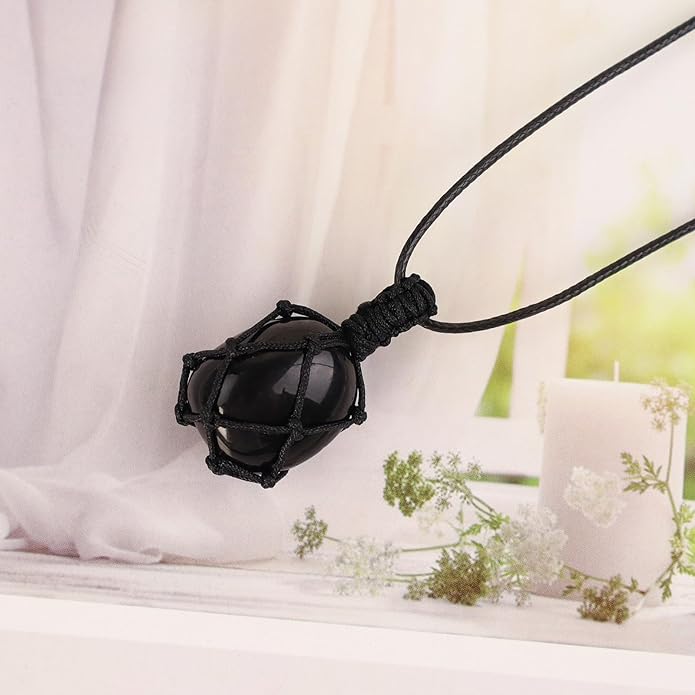Handmade Natural Gemstone Crystal Pendant Necklace Stone Holder Necklace Cord Net Necklace with Adjustable Length for Women Men