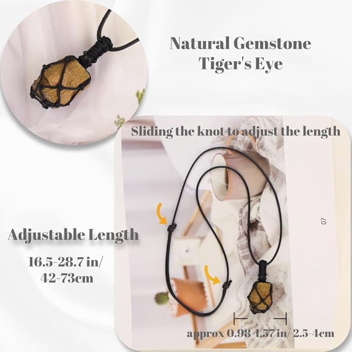 - 【Natural Gemstone】: This crystal necklace is handmade, Unique and Classic. Tiger's Eye size: approx 0.98-1.57 inches / 2.5-4cm , Adjustable Chain Length: 16.5-28.7 inches / 42-73cm
