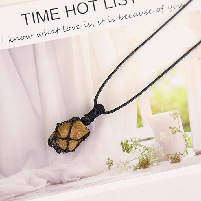 Handmade Natural Gemstone Crystal Pendant Necklace Stone Holder Necklace Cord Net Necklace with Adjustable Length for Women Men