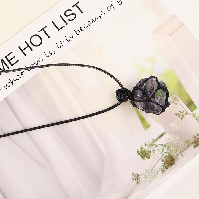 Handmade Natural Gemstone Crystal Pendant Necklace Stone Holder Necklace Cord Net Necklace with Adjustable Length for Women Men