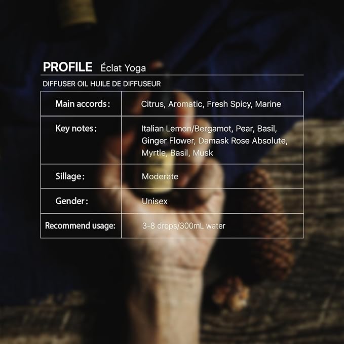 Éclat Yoga Diffuser Oil, Cosmopolitan Yoga Selection,Italian Lemon/Bergamot, Pear, Basil, Ginger Flower, Musk Essential Oils Blend for Ultrasonic Diffuser (.33 oz/10 ml)