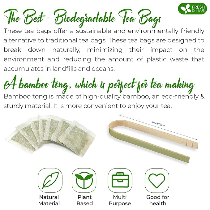 - ☘️ BIODEGRADABLE TEA BAG - NATURAL MATERIAL: The tea bags are made of natural corn fiber, which is friendly for the environment. No Strings. No Wrapped. No Staples. No Adhesive. No Bleach. No Dyes - 100% Safety.