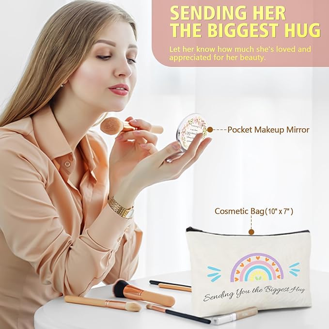 - SWEET PERSONAL MESSAGE GIFT CARD AND BEAUTY SETS: Write down your special blessings on the customized greeting card and send it with this beauty gift kits to your female friend. The 10"x7" bag keeps cosmetics organized and portable. The mirror, featuring regular and 2x magnifying sides and the heartfelt message "sometimes you forget you are beautiful." Serves as a reminder of your love and encouragement. Let her know how much she's loved and appreciated for her beauty