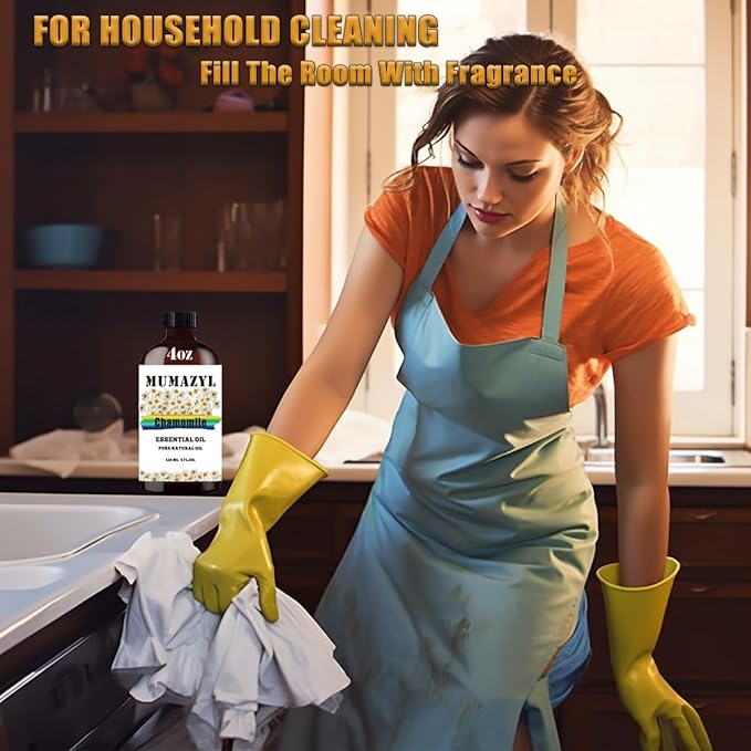 Chamomile Essential Oil, Chamomile Oil 4 Fl Oz 120ML for Diffuser Humidifier Yoga Cleaning DIY Candle Soap Making Essential Oils