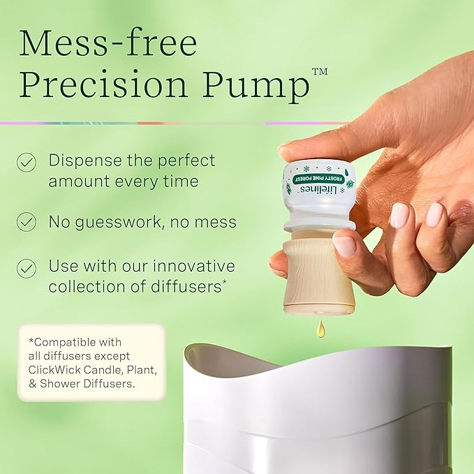 - Mess-Free Precision Pump: Dispense the perfect amount every time with no guesswork and no mess. Use essential oil blends with any diffuser! We recommend pairing them with our innovative collection of diffusers.