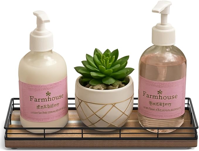- VERSATILE FUNCTIONALITY: Elevate your daily routine with our bathroom counter tray; Neatly arrange bathroom essentials like soap, toothbrushes, cotton swab and lotions, keeping your countertop tidy; Add a touch of elegance to your dresser by using the vanity tray to showcase perfumes, jewelry, and cosmetics; Impress your guests with neatly arranged hand towels and toiletries presented on the small tray or use it as a toilet tank tray