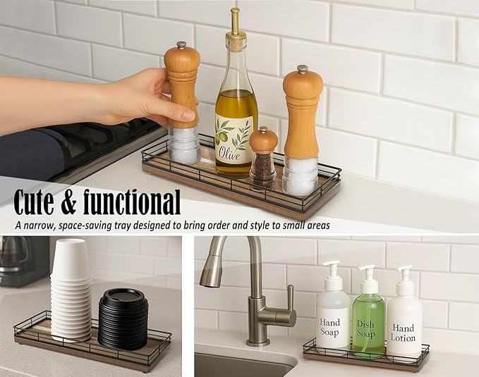 - ADAPTABILITY: This wooden tray easily switches between roles – from a stylish vanity tray for your bathroom sink to a convenient spice organizer on your kitchen countertop; Its adaptability extends to becoming a decorative table centerpiece in any corner of your home