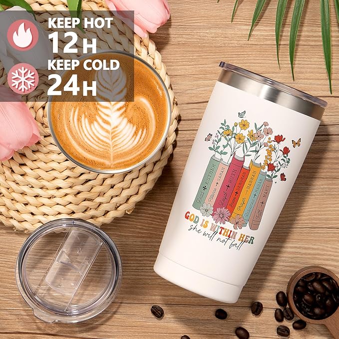 - INSULATED VACUUM TUMBLER: Made of 18/8 food-grade sturdy stainless steel, with double-walled vacuum insulation, this sweat-free 20oz insulated tumbler with lid can preserve beverage temperature up to 24h for cold & 12h for hot, great for iced coffee, tea, wine, juice, champagne, smoothies, sodas, milkshake,etc; Comforting & Encouraging words bring her powerful strength & positive mood every time when she see and read it, making it a unique happy birthday gifts basket for her women best friends