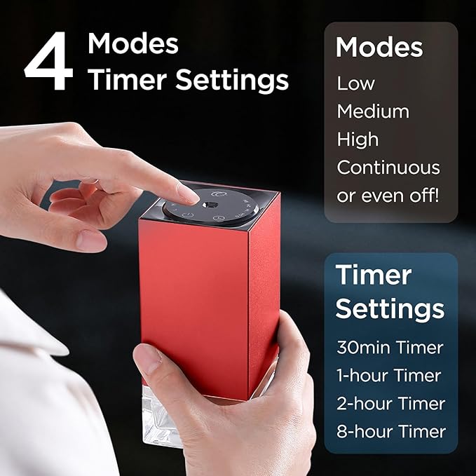 - 【Adjustable Modes with Timer Function】The diffuser offers 4 mist modes and customizable timer settings (0.5/1/2/8 hours), allowing you to easily adjust mist duration and intensity based on your needs, adding convenience and flexibility to your aromatherapy experience