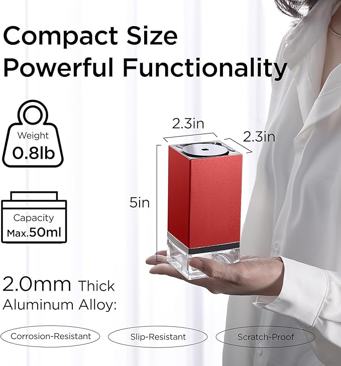- 【Aluminum Alloy Design with Silent Operation】Made from premium aluminum alloy, this diffuser boasts a sleek and durable design, combined with silent operation for a peaceful aromatherapy experience. Its compact size fits perfectly in various settings—at home, in the office, bathroom, or even during travel—adding a touch of elegance and tranquility