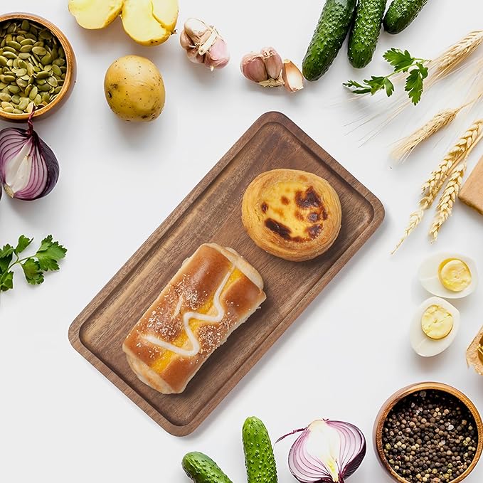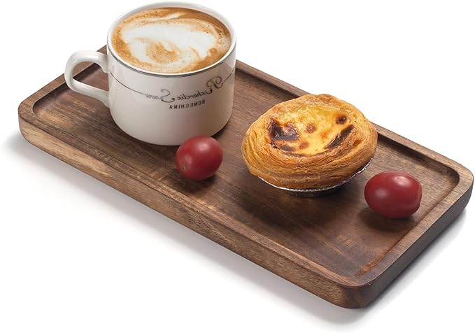 - Decorative Tray: Minimalist design and unique acacia wood construction creates retro tones for your home, suitable for any decor style. The curved edge design makes it more convenient to move the tray and keeps items safe on it.
