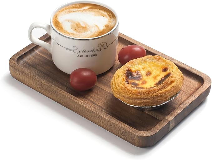 - Decorative Tray: Minimalist design and unique acacia wood construction creates retro tones for your home, suitable for any decor style. The curved edge design makes it more convenient to move the tray and keeps items safe on it.