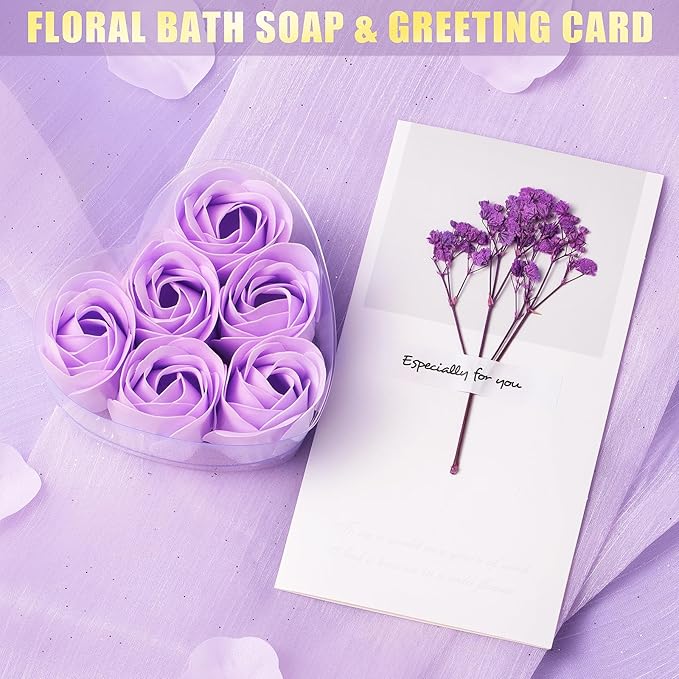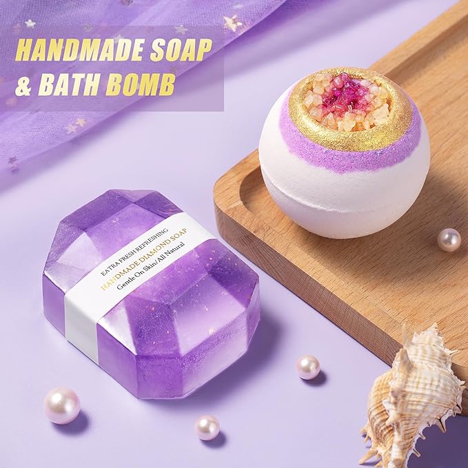 - Lavender-Scented Relaxing Spa Gifts: The 4oz lavender & vanilla-scented candle in our get well gift baskets is made of natural soy wax, can burn smokelessly & evenly for up to 20+ hours. It comes with a diamond handmade soap, floral bath soap, and an exquisite bath bomb, all releasing gorgeous & long-lasting lavender fragrance, which will bring her a luxurious & sublime bubble bath experience, and help soothe her mind and relax her body. The perfect Gift idea of purple-theme self care gift sets
