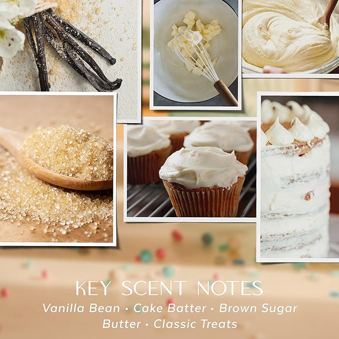 - VANILLA BUTTERCREAM – A SWEET, COMFORTING INDULGENCE: Fill your space with the nostalgic aroma of whipped vanilla icing, brown sugared sweetness, and warm baked treats. Reminiscent of birthday celebrations and cozy afternoons baking with loved ones, this cream-colored candle wraps you in the comforting glow of sweet memories. The perfect scent for creating a warm, inviting ambiance all year round.
