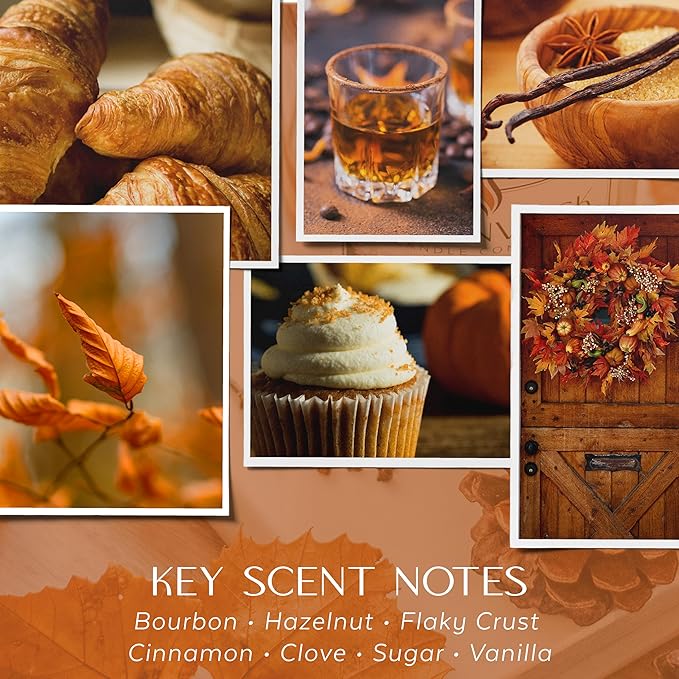 - WELCOME HOME – A COZY ESCAPE: Indulge in the comforting aroma of bourbon, hazelnut, cinnamon, vanilla, and flaky crust with this caramel-colored candle. This rich blend evokes the warmth of home and the joy of spending cherished moments with family and friends, filling your space with the perfect fall ambiance. Ideal for cozy gatherings and making lasting memories, it brings the essence of warmth and comfort to any room.