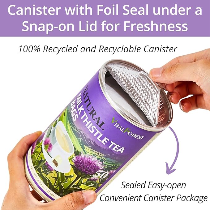 - [ Eco-Conscious Tea Bags & Canister ]: Our best milk thistle tea are made from unbleached bag, they contain no strings, wrapping, staples, adhesive, bleach, or dyes, good for the environment and health. Enjoy pure, high-quality tea in biodegradable-bags. And special convenient canister with lid. There is a foil protective seal under the lid - easy to remove and useful to keep the milk thistle tea bags fresh