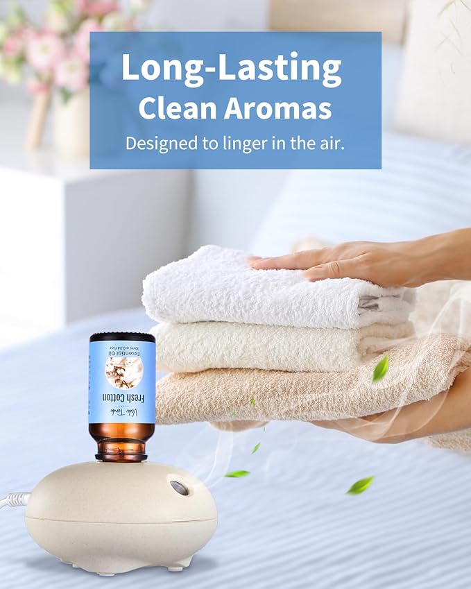 - This clean scent set includes 6 essential oils - fresh cotton, clean home, fresh linen, soap, aloe, and clean air. Add a few drops to your diffusers or humidifiers for bedroom, bathroom, kitchen, office, car, laundry, so you can feel the magical power of essential oils at any moment, anywhere.