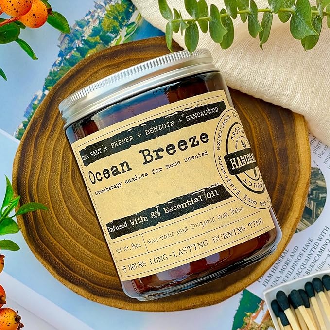 - Material : 100% Natural Soy Candles with Essential Oils, 8% Pure Essential Oils: Ocean Breeze Fresh Scent Candles, Organic and Non Toxic Wick 100% Natural Soy Candles with Essential Oils, 8% Pure Essential Oils: Ocean Breeze Fresh Scen… See more