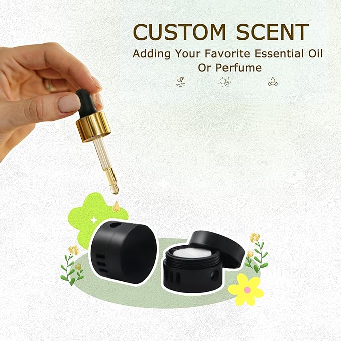 - High-Capacity Scent Storage:Holds twice as much fragrance as standard clips. Engineered airflow vents ensure gentle, even scent diffusion. Refill oils easily through the top hole without disassembly. Bonus: Attach a string to create a unique pendant