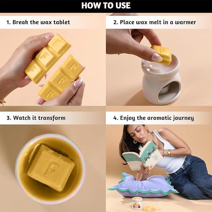 - [PREMIUM SOY & PALM WAX] - Experience the pinnacle of luxury with premium soy wax melts for warmers. Melt effortlessly, leaving no residue. Enjoy a cooler, flameless burn and easy washability with soap and warm water for the wax warmer.