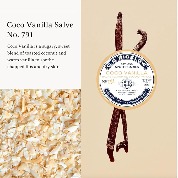 C.O. Bigelow Assorted Salve Tins, Pack of 3 Lip Balm Tins, Coco Vanilla, Apple, and Herbal Mint All Purpose Salve for Lips, Cuticles, Hands & Dry Skin, Lip Balm Set, 0.8 oz