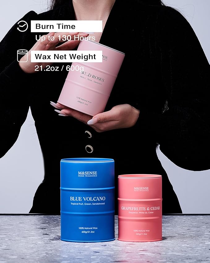 - š Sustainable Material - M&SENSE candles are all crafted with the finest and most natural ingredients. Using high-end vegetable wax and unbleached cotton wicks in a reusable and recyclable tin. Packaged in recycled honeycomb paper and cardboard box for a more sustainable future.