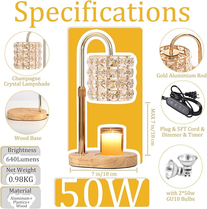 - Elegant Home Decor: Comes with warm white 2 x 50 watt GU10 bulb to create a cozy inviting atmosphere and cast nice ambient light, eliminating the fatigue and bring you a happiness and soothing at the end of the day. Adjustable height design can adapt to most candles. Amber crystal glass lampshade paired with soft-glow lighting as a bedside lamp, also a nice elegant home decoration