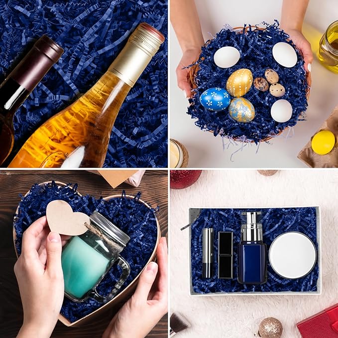 Darfukei Shredded Paper For Gift Baskets, Crinkle Paper 1/2LB (8 oz), Dark Blue Crinkle Paper Filler, Crinkle Cut Paper Shred For Birthdays, Weddings, Boxes Bags, Basket Filler, Anniversaries, Gift Wrapping