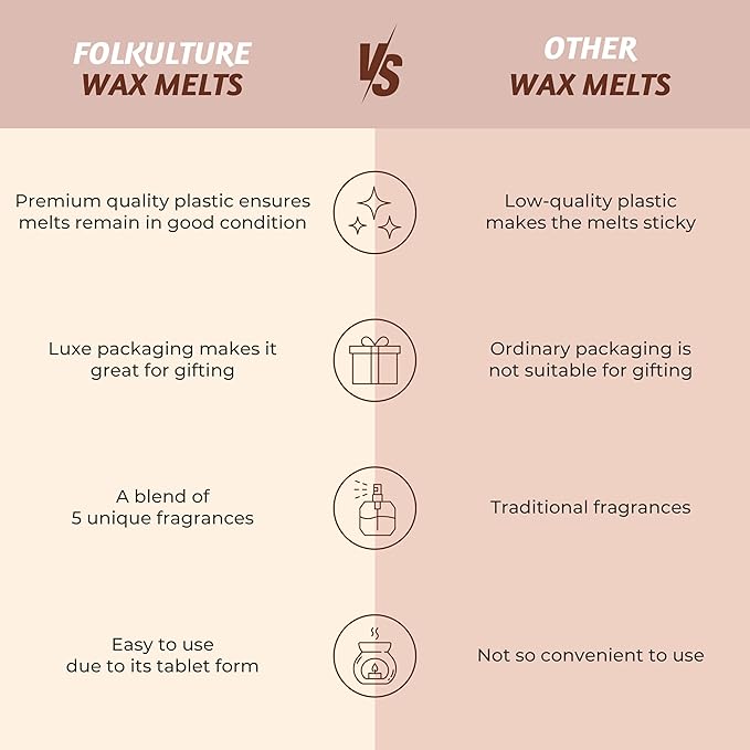 Folkulture Wax Melts or Wax Cubes | Set of 5 Scented Wax Melts for Warmer | 30 pc 100% Natural Soy and Palm Wax-Melt for Gifts for her | Orange, Balsam Cedarwood, Green Tea, Rose
