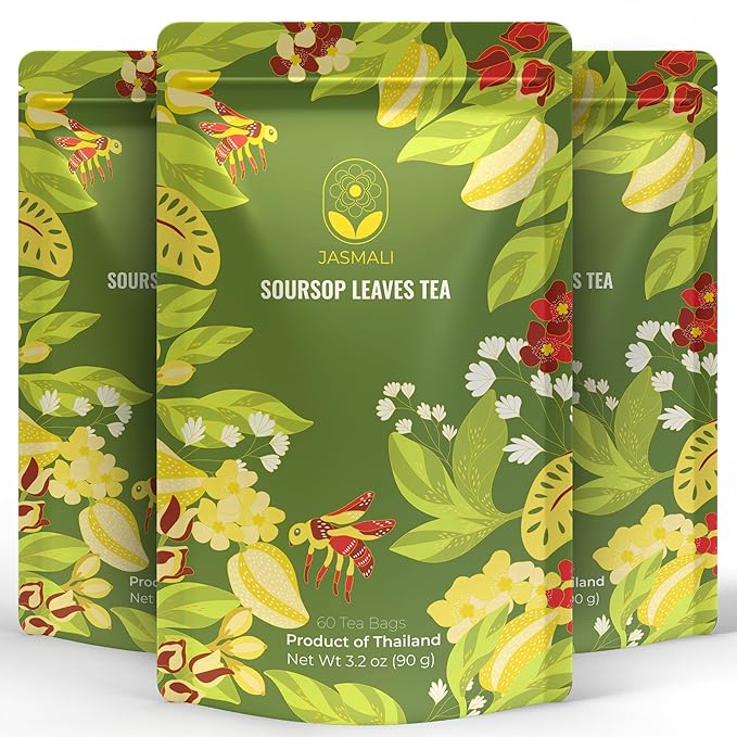 Jasmali Soursop Tea - 60 Dried Soursop Leaves Tea Bags, Herbal Tea, Hoja de Guanabana, Vacuum Sealed, Sourced from Thailand, Caffeine Free, Gluten Free