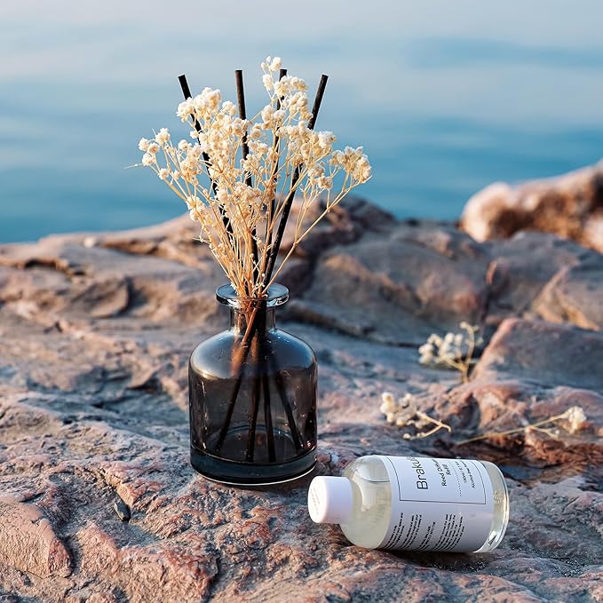 - 【Reed Diffuser Set Package Contents】: Fresh linen scent Beautifully designed bottle, 180ml liquid refill, 8 aromatherapy sticks, dried baby's breath, and 1 luxurious and beautiful box.6.09 fl oz /bottles