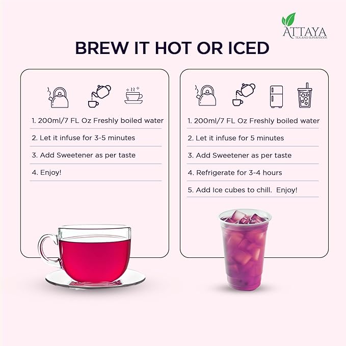 - Hibiscus Tea Loose Leaf โ Premium Natural Hibiscus flowers that are 100% natural, carefully sun-dried, and bursting with a vibrant, tart, floral taste thatโs refreshing, caffeine-free, and packed with wellness benefits.