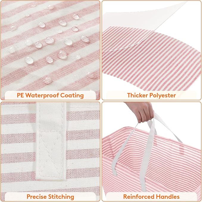 - Premium Material: The foldable clothes basket is made from thick polyester and primuin cotton. The interior features PE waterproof coating can keep stored items dry. Simply use a wet cloth to wipe off the dirt. Do not clean it in washing machine and dryer, as doing so may damage the leakproof PE coating.