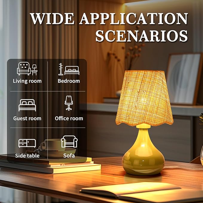 - 【Versatile Home Lighting】 With its simple design, this small table lamp is suitable for decorating any corner of your home, especially in the bedroom, living room, study room, kids' room, nursery, office, or dorm. Featuring a rattan shade and a green metal base, this bedroom lamp is an ideal Christmas gift for your family and friends.