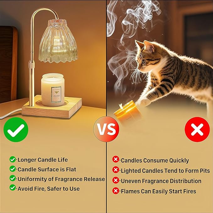 - 【Best Holiday Gift】 This candle heat lamp comes in a soft amber-gold color that complements most of its surroundings, adding a stylish and functional ambiance to any scene. At the same time, it removes unpleasant odors from the air by evenly releasing scent, bringing comfort and relaxation to your space as well as those of your friends and family around you. Our products are excellent in performance, versatile and beautifully packaged, making them perfect for gift-giving on Valentine's Day, Christmas, Thanksgiving, Father's Day, Mother's Day, housewarming and other special occasions.